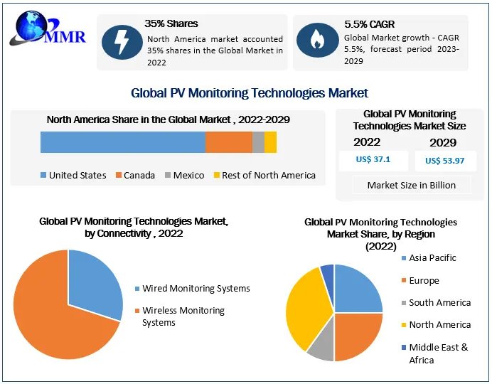 Market Overview: In a significant leap towards sustainable energy, the Global PV Monitoring Technologies Market achieved a valuation of US $37.1 Billion in 2022. Poised for substantial growth, the market anticipates a steady CAGR of 5.5%, projecting an impressive reach of nearly US $53.97 Billion from 2023 to 2029.